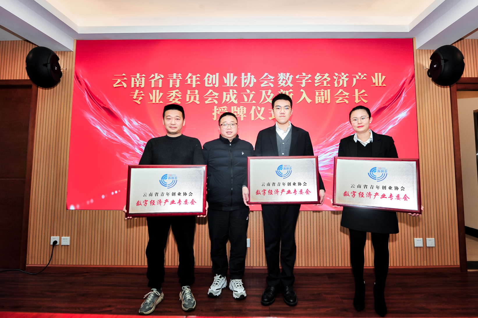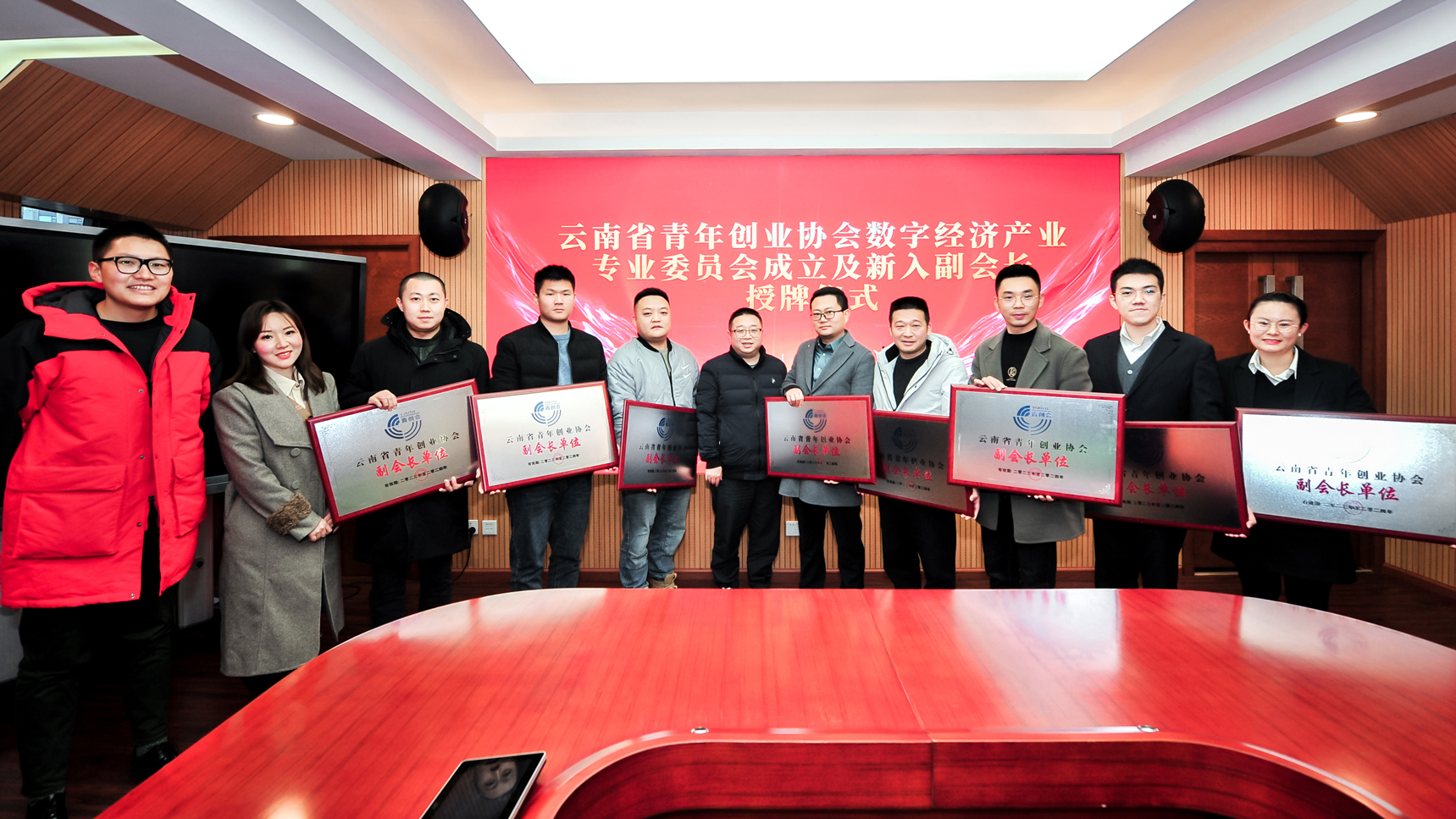 會議期間為新入副會長單位頒發牌匾,提出青創會的發展要不斷借力“智庫”,凝聚更多的新生力量,并表示新成立的數字經濟產業專業委員會要以高度的使命感和責任感開展工作,積極探索數字經濟產業新的發展模式,成為青年創業者的護航者、助力云品出滇的踐行者、助推鄉村振興的探索者、爭當數智云南勇立潮頭的先行者。